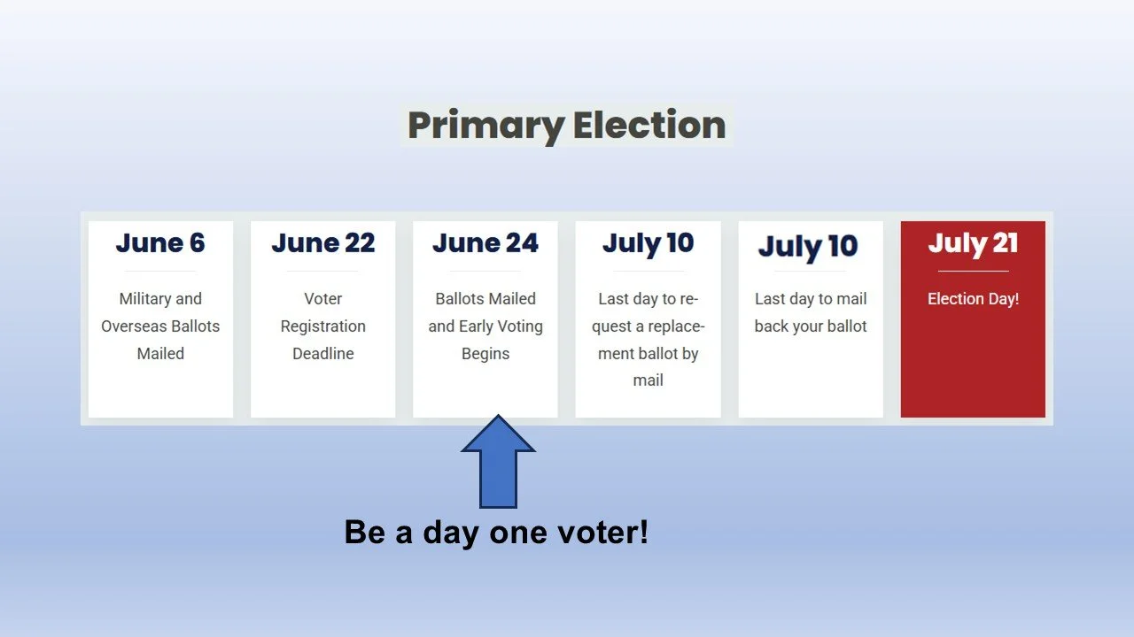 Prepare for the 2026 ElectionLegislative District 27 Are You Registered?Are You Signed Up To Get Your Ballot By Mail?Check HERE Important Election Dates in 2026 Check HERE to see the Democrats running and to sign candidate nominating petitions on line. You will need your drivers license as identification.